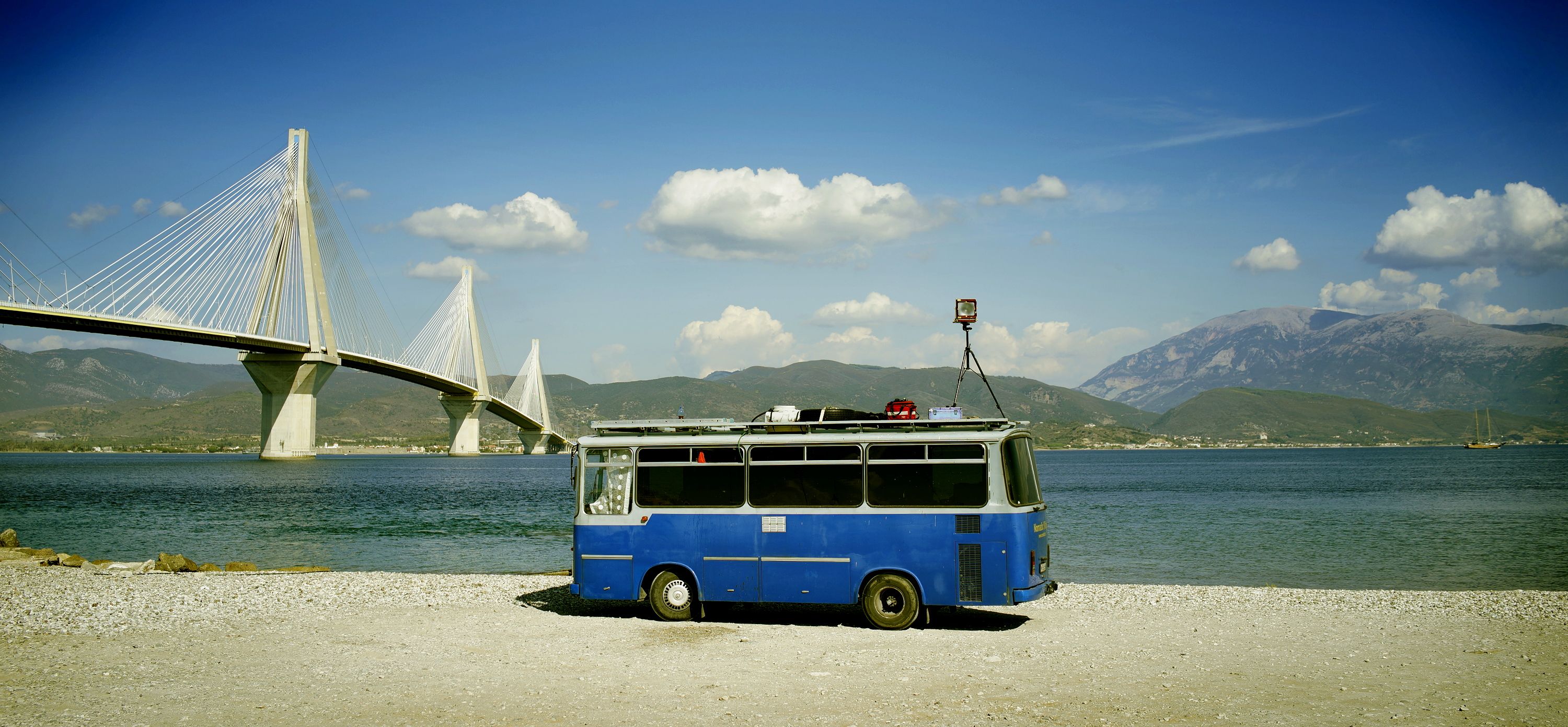 Lufka the Van is an american monster from 1969. It's built like a tractor with the body of a van. This setup contained everything to take and print analog photos without having to return home. It was the most improvised I ever worked; e.g. to achieve a temperature of 38°C for film developement, I heated the caravan's bathroom to that temperature and developed in there. Naked and sweating.