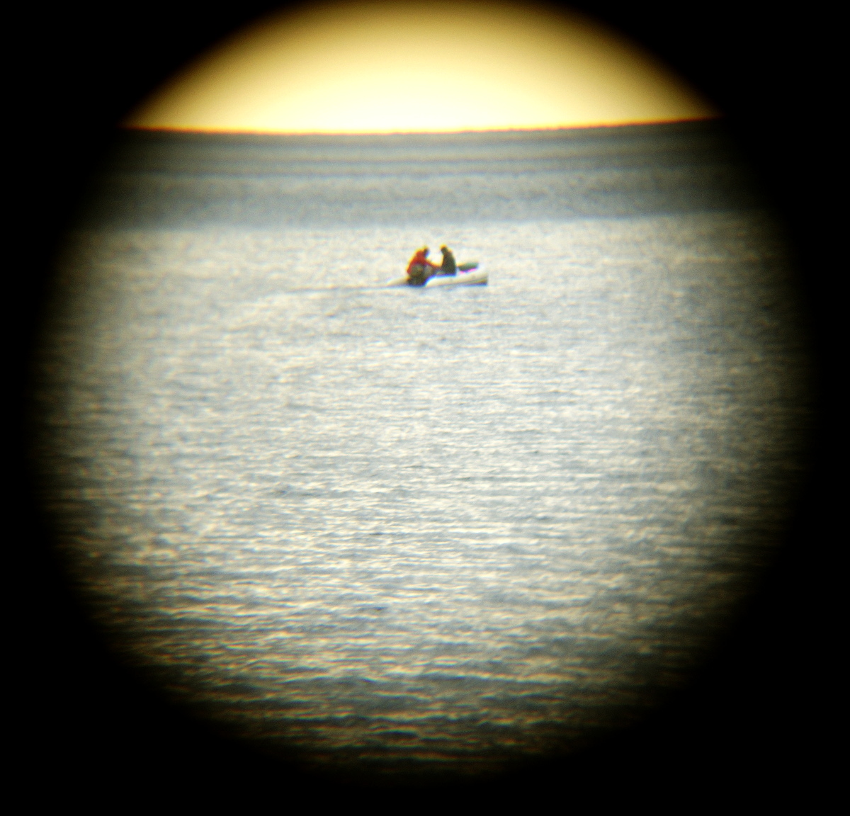 Shot through binoculars from a beach on the eastern corner of the Gulf of Korinth.